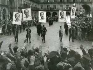 Heleen geeft een presentatie over de Spaanse Burgeroorlog. Deze was van juli 1936 tot april 1939. Het rechts-nationalistische leger van Franco veroverde delen van Spanje vanaf het zuiden, geholpen door het vreemdelingenlegioen, Hitler en Mussolini. Het republikeinse volksleger werd geholpen door de Internationale Brigade en de Sovjet-Unie. Na het einde van de burgeroorlog was Spanje een militaire dictatuur tot 1975 (het overlijden van Franco).